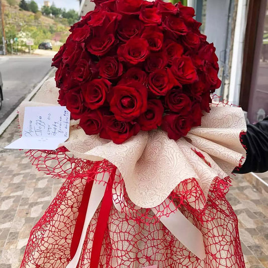 Μπουκέτο με 100 κόκκινα τριαντάφυλλα