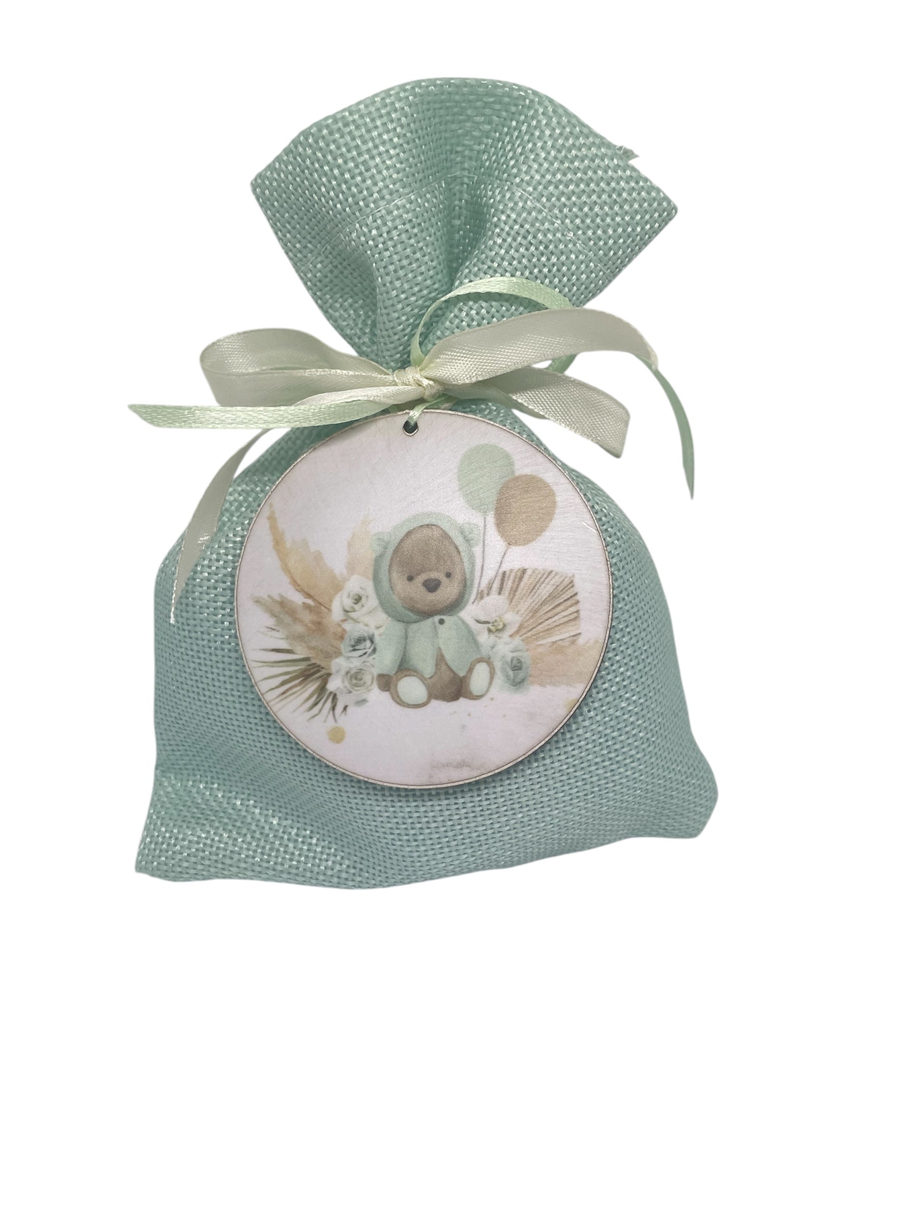 Μπομπονιέρα αρκουδάκι boho σε πουγκάκι