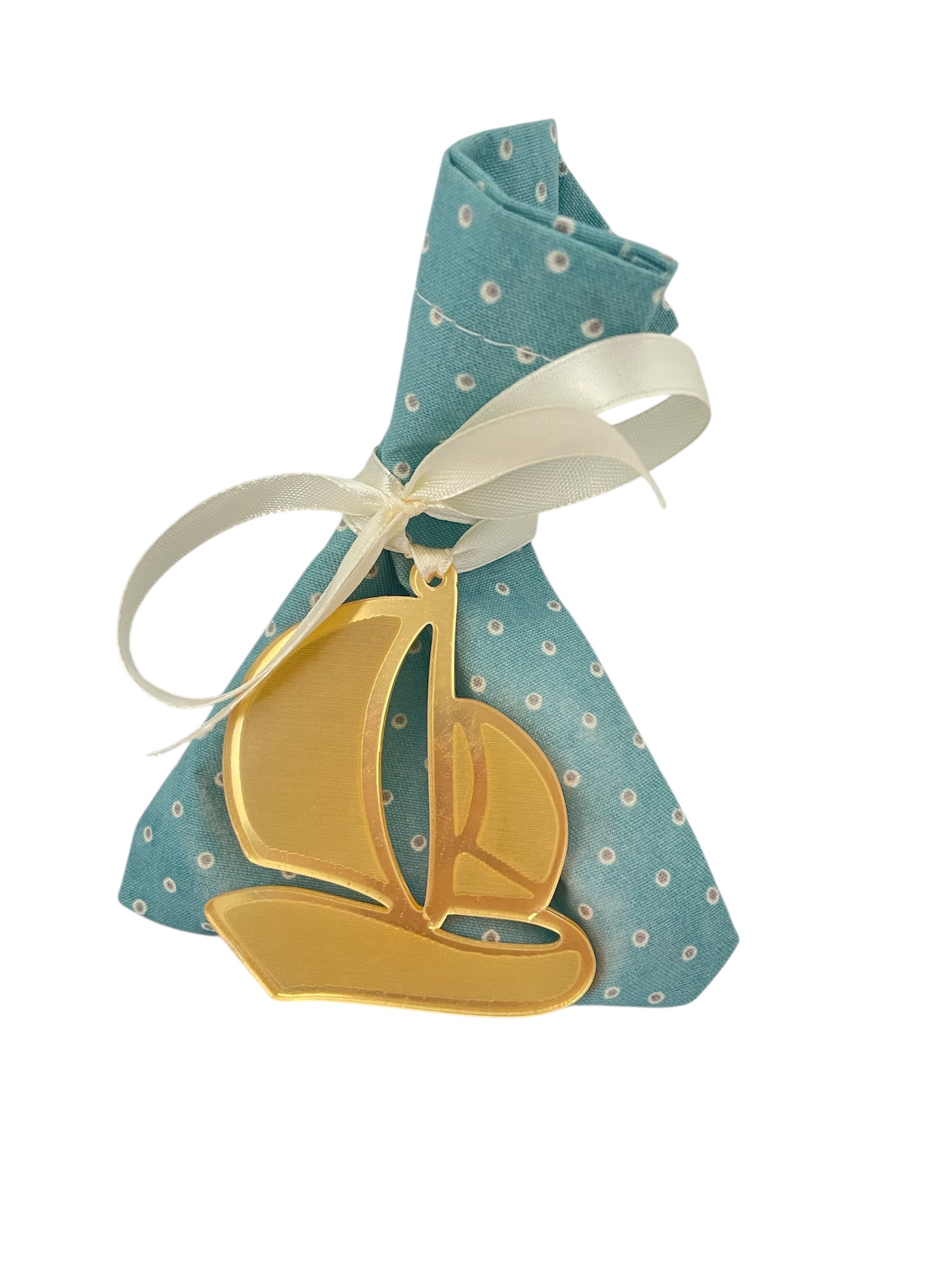 Μπομπονιέρα καραβάκι σε πουγκάκι