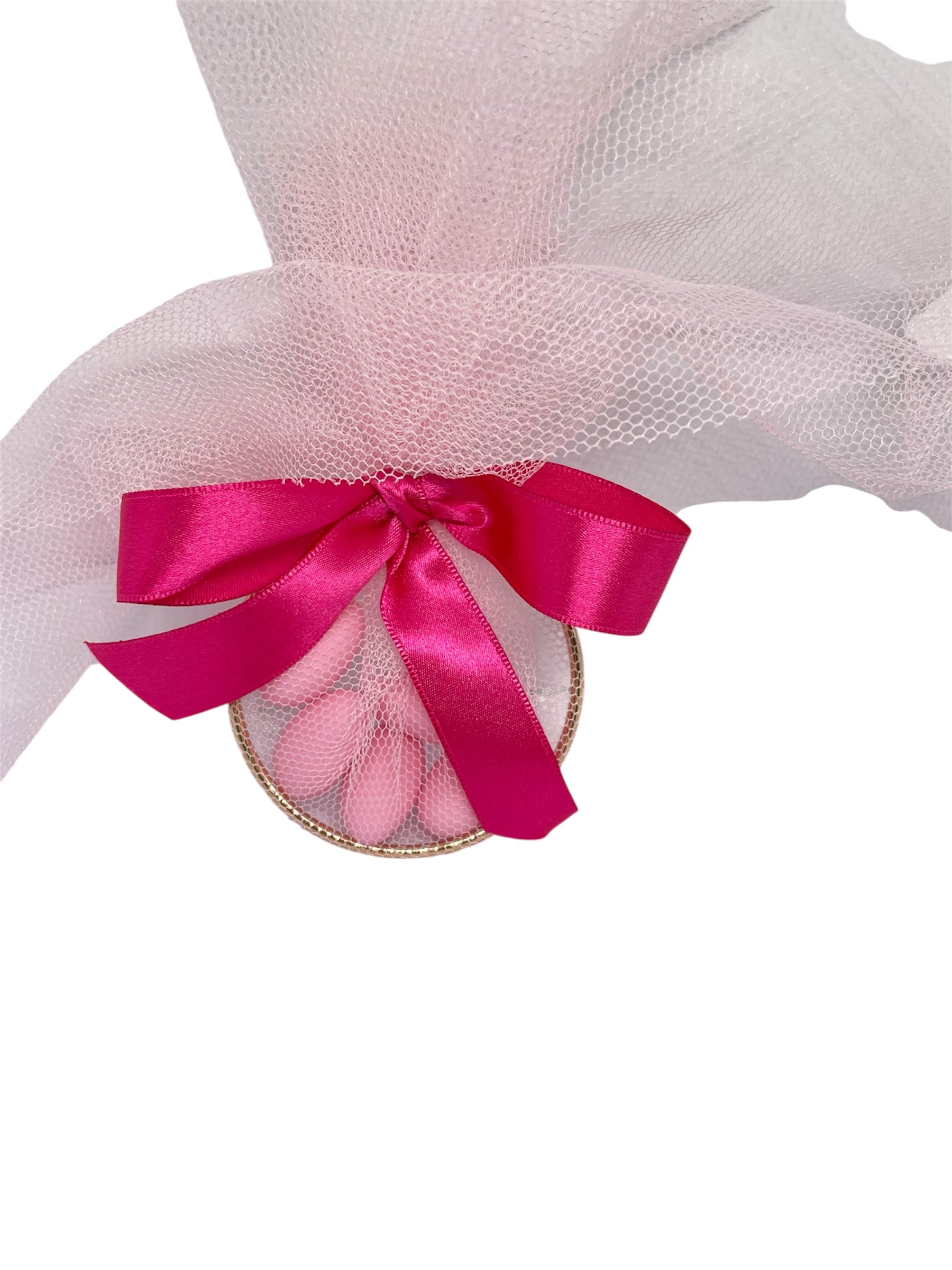 Τούλι και κορδέλα σε χρώματα της επιλογής σας.