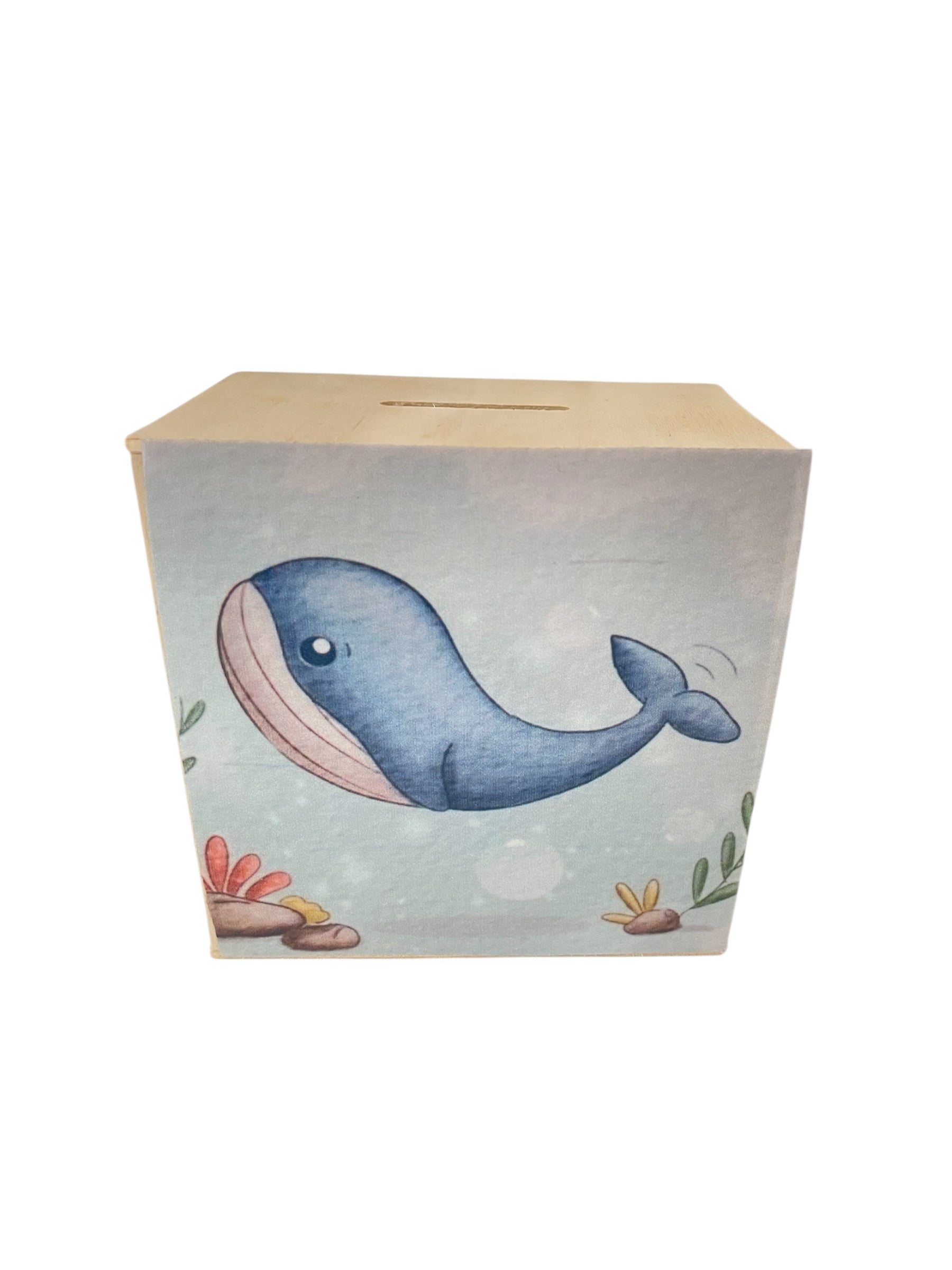 Μπομπονιέρα φάλαινα σε ξύλινο κουμπαρά