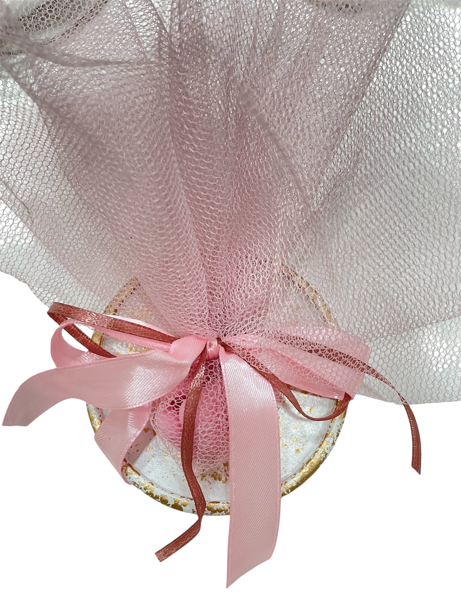 Δεμένη με 3 ή 5 Κουφέτα Crispy σοκολάτας Χατζηγιαννάκης ή 5 Κουφέτα Σοκολάτας Πικολίνο Χατζηγιαννάκης. Η τιμή αφορά μια ολοκληρωμένη μπομπονιέρα. Χρονος παράδοσης 1-2 εβδομάδες. Για την διεκπεραίωση της παραγγελία, απαιτείται 50% προκαταβολή. Τούλι και κορδέλα σε χρώματα της επιλογής σας. Συμπληρώστε στο πεδίο Σχόλια/Λεπτομέρειες τα χρώματα που επιθυμείτε Αποστολές γίνονται σε όλη την Ελλάδα, Κύπρο και Εξωτερικό.